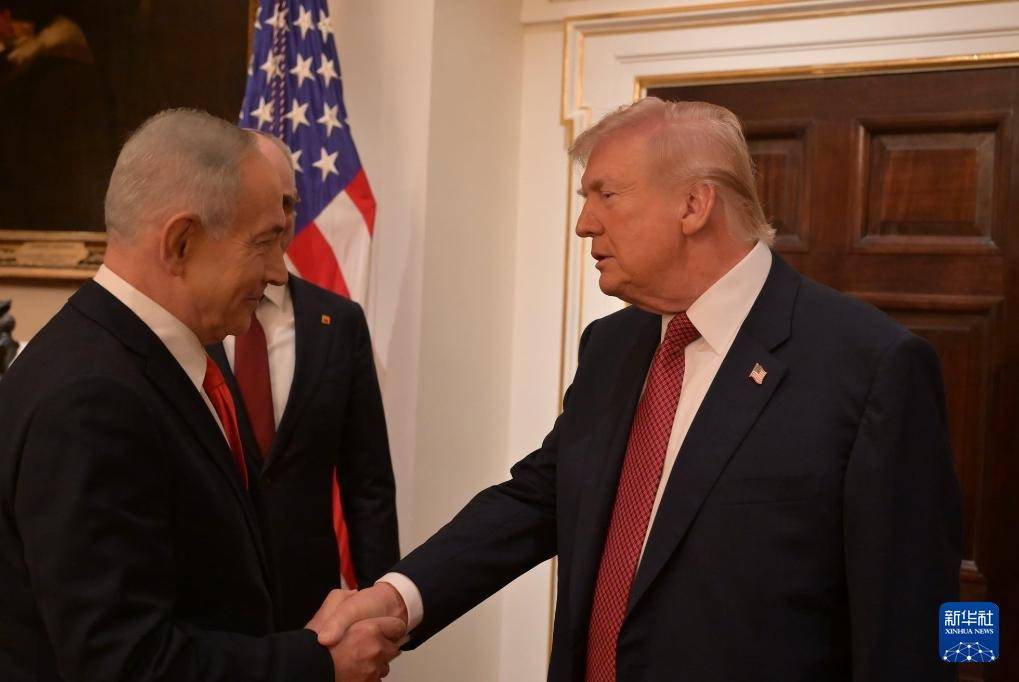 2月11日,在好意思国王人门华盛顿白宫,好意思国总统特朗普(右)管待到访的以色列总理内塔尼亚胡。新华社发(以色列政府新闻办公室供图)