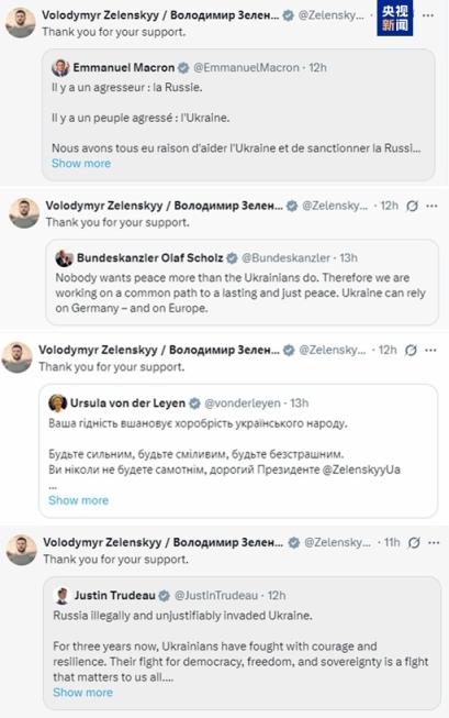 泽连斯基离开白宫后,在社交媒体上说了37个“感谢”,当今仍在陆续。