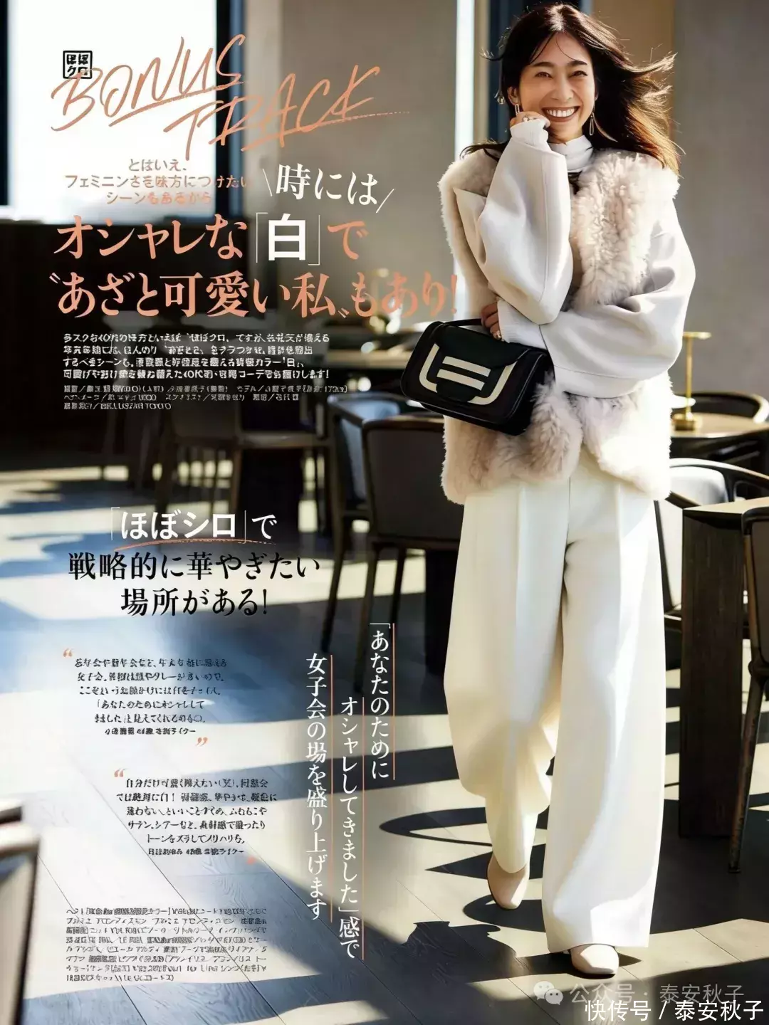 劳苦了一整年,也困难了一整年,不论有莫得挣到钱,我们王人该给我方安排一套权贵又斯文的行头,好好犒劳犒劳阿谁发奋的我方,比如“短皮草+阔腿裤”就相配允洽。